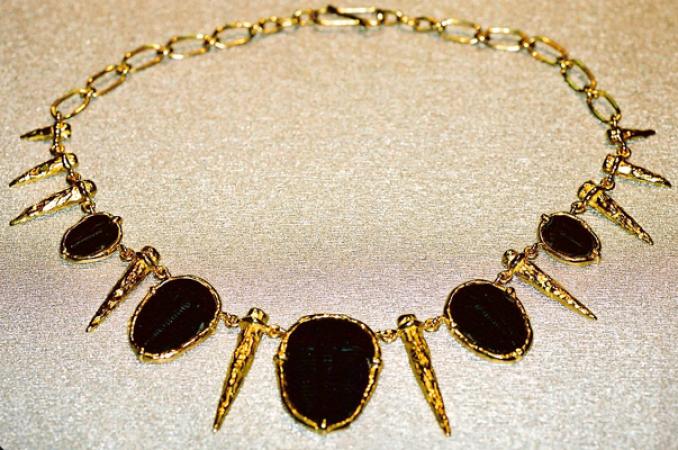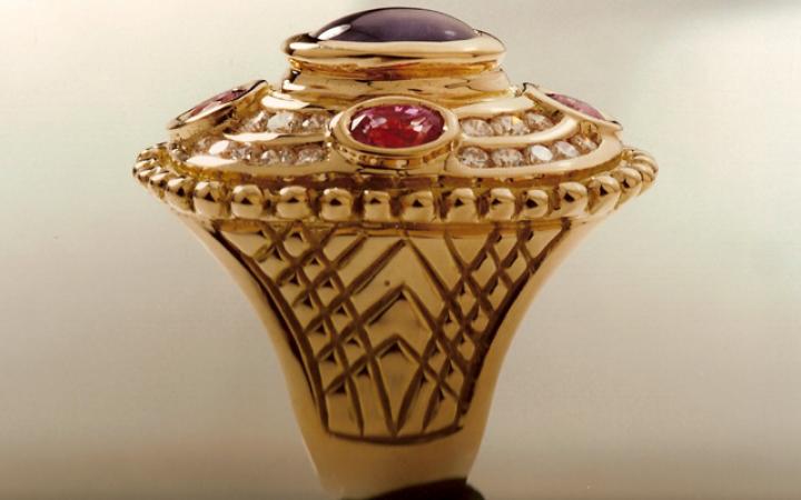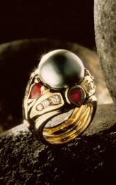 Retour à l'accueilLes bijoux créés par Philippe Comoy se distinguent par un style très personnel, inspiré de l’art byzantin, de l’époque médiévale ou encore de la renaissance. Ces influences s’interprètent autour d’or jaune ou gris martelé ou ciselé et sont rehaussées de pierres aux couleurs chatoyantes : rubis, émeraudes, saphirs mauve, orange, rose, verts… Mais aussi, avec humour et impertinence, ses créations s’habillent de perles, de cristal, de fossiles et même de petits galets de plage.